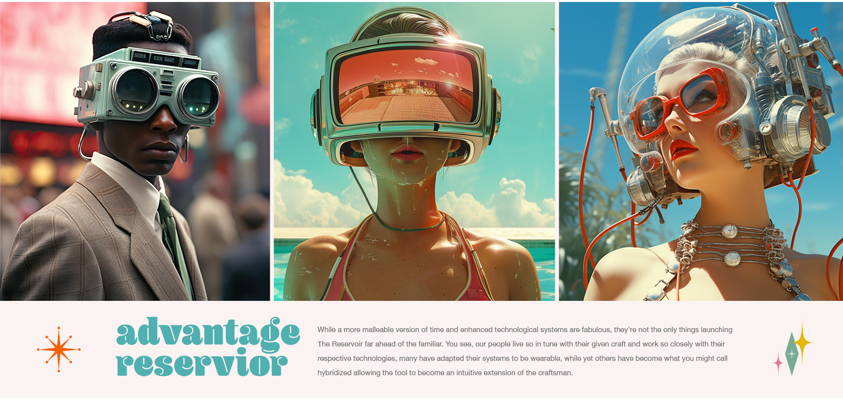 Since The Reservoir is a collective of individual artists working remotely, i wanted a brand that highlights the virtual nature of how it works, while creating a fantastical, retro-futuristic reality that we live and work in.
